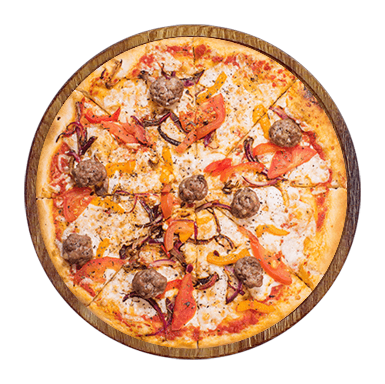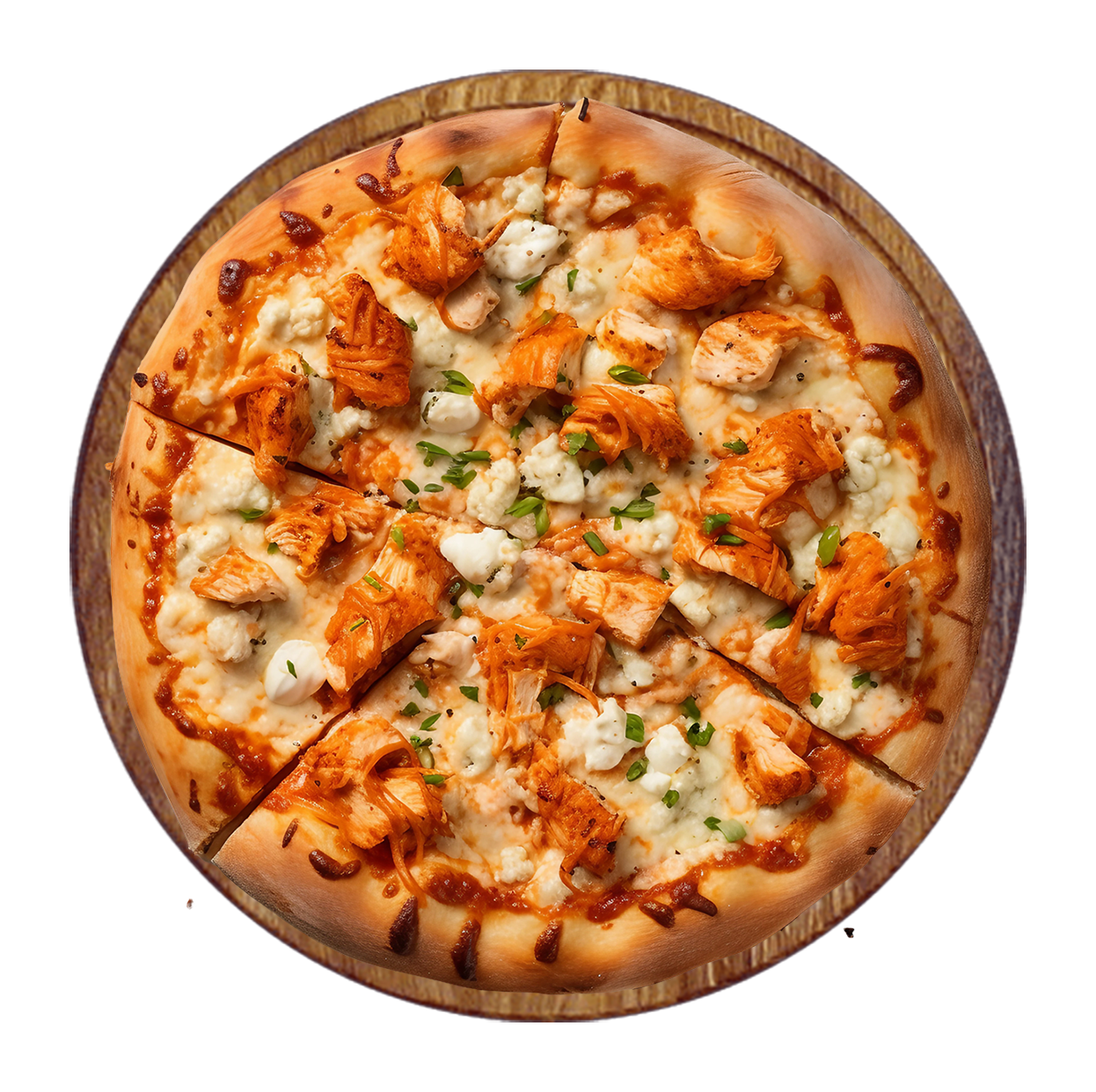Sauce tomate, fromage, poulet rôti, merguez, boulette kefta, oignons, filet de sauce barbecue.